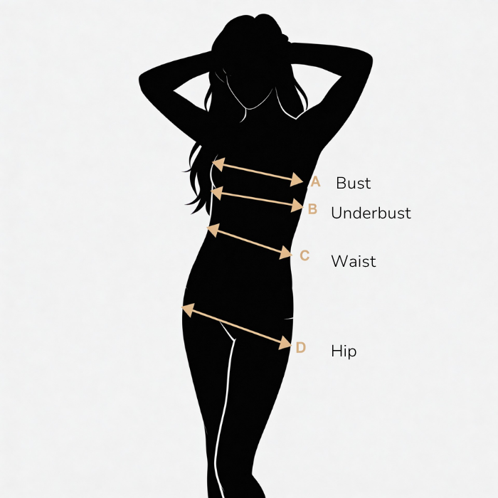 - Underbust measurement: measure snugly directly under your bust.